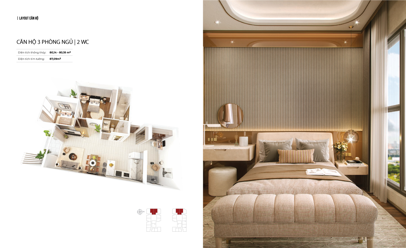 An 87m2, 3-bedroom apartment designed in a wellness-inspired style, featuring river views, seamlessly blends convenient living with tranquil experiences. By capitalizing on the scenic river panorama, the apartment fosters a connection with nature, providing a calming retreat.