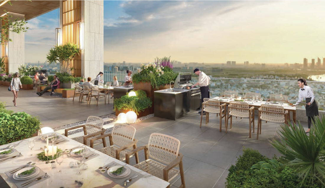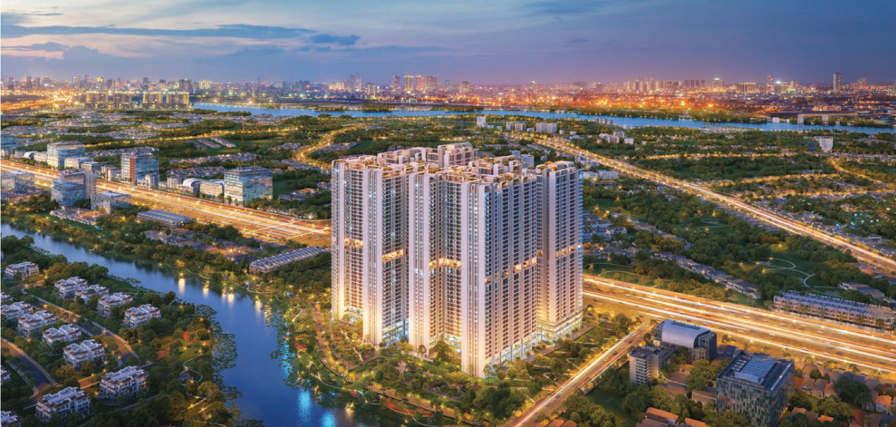 With a total planning area of 44,000 m2 and a construction density of 43%, the project comprises 6 apartment towers, each 40 stories high (with 3-4 basement levels for parking), divided into two zones, A and B, designed harmoniously with the green landscape.