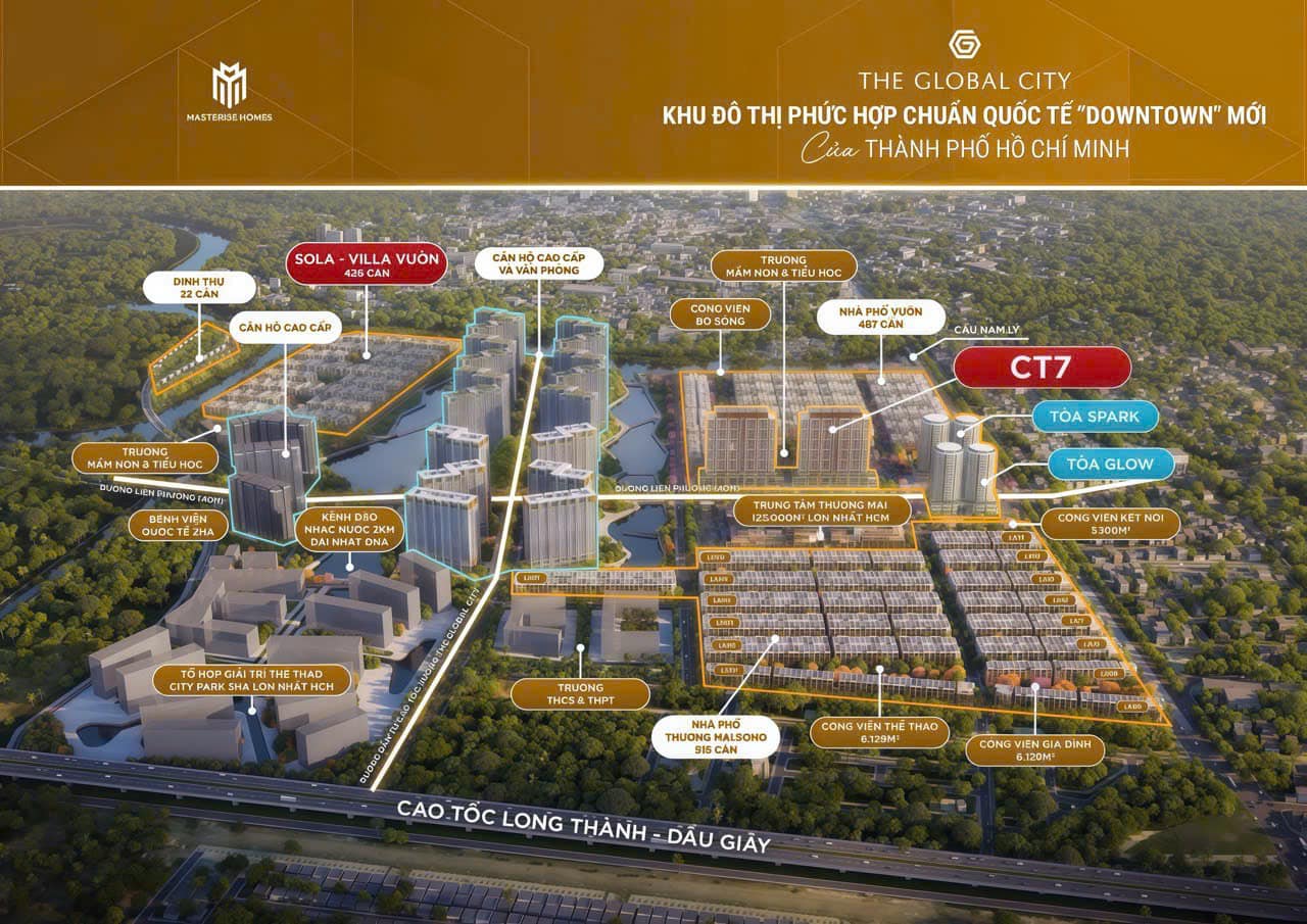 The Global City is a large-scale, modern urban area in East Ho Chi Minh City, developed by Masterise Homes. The project spans 117 hectares and is a complex of residential, commercial, and service facilities, along with a range of world-class amenities in Southeast Asia. It offers a diverse range of product types, including shophouses, garden villas, and luxury apartments, as well as functional subdivisions with international schools, hospitals, sports areas, playgrounds, amusement parks, landscaped lakes, water features, and walking streets.